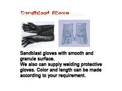 Sandblast gloves with smooth and granule surface. We also can supply welding protective gloves. Color and length can be made according to your requirement. Sandblast Glove